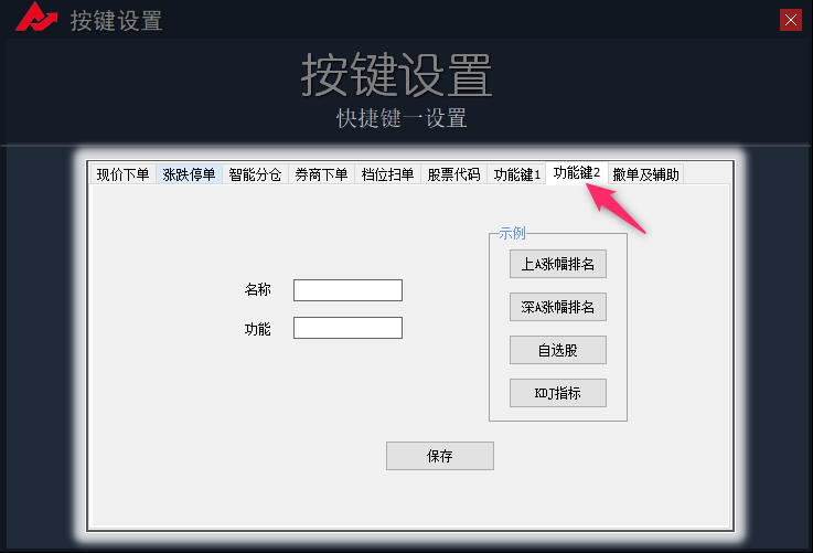 功能栏目需要填入热键,名称项填写对应的提示名。参照上面的定义,字符串填写的时候,顺序填入字符即可。